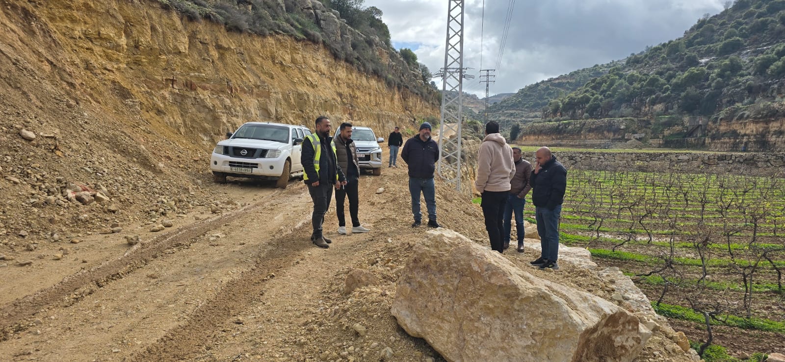 لجنة السلامة بمحافظة الخليل تنفذ جولة ميدانية لمتابعة الاعتداءات على خطوط النقل في منطقة "واد فرعة