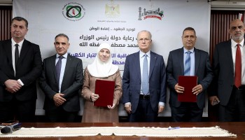 رام الله-مكتب رئيس الوزراء: برعاية وحضور رئيس الوزراء د. محمد مصطفى، جرى اليوم الثلاثاء مراسم توقيع اتفاقية تزويد مدينة الخليل بالتيار الكهربائي من محطة بيت أولا